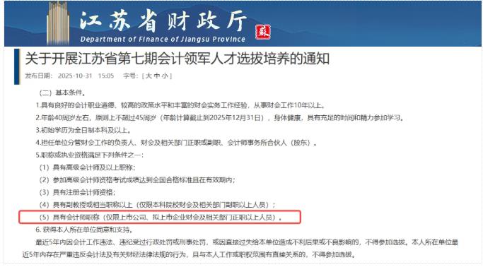 近期,还有多地发布了高端会计人才选拔培养的通知,有多个地区都明确要求报名条件之一:具备“中级会计职称”。