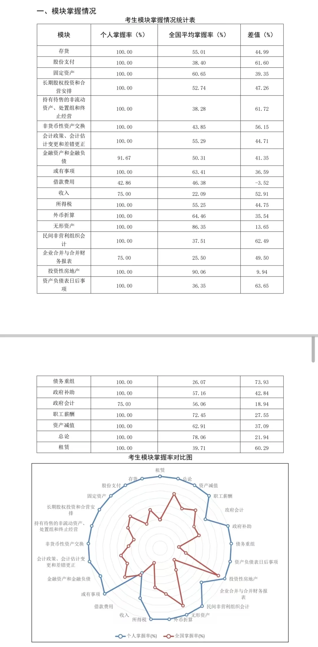 在2025年中级会计考试知识模块掌握情况分析报告分为三个部分:模块掌握情况、模块百分等级、术语表,针对每个考生的考试情况生成的专属报告。