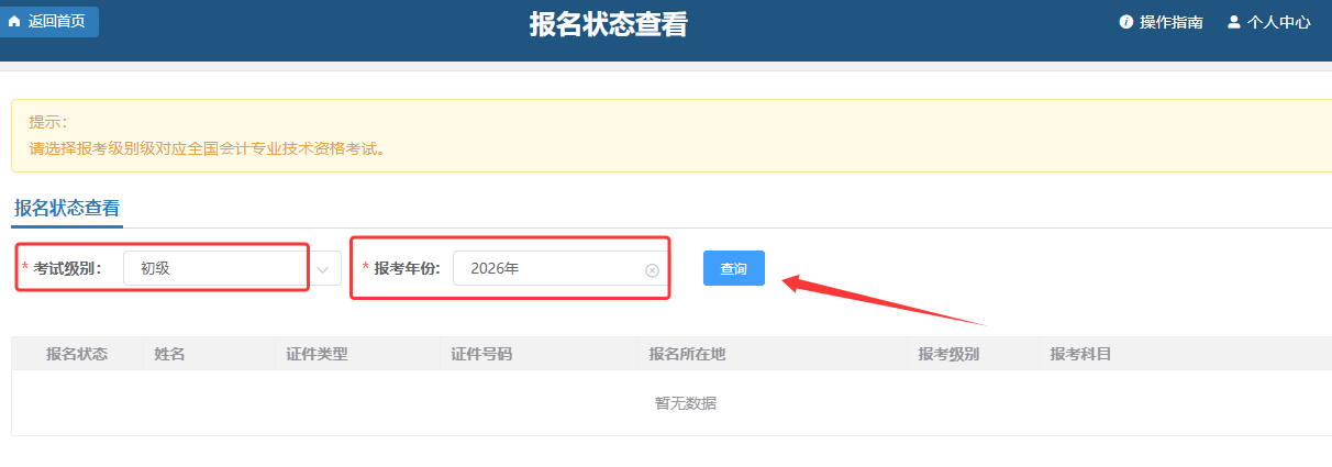 2026年度初级会计报名状态查询入口:全国会计人员统一服务管理平台(ausm.mof.gov.cn)。