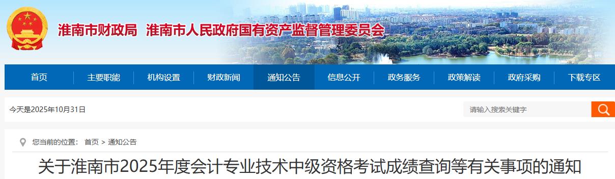 关于淮南市2025年度会计专业技术中级资格考试成绩查询等有关事项的通知