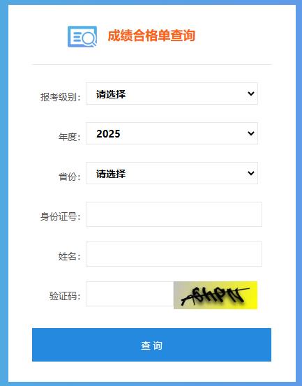 第三步:输入相关信息(报考级别、年度、省份、身份证号、姓名、验证码)进行查询成绩合格单。