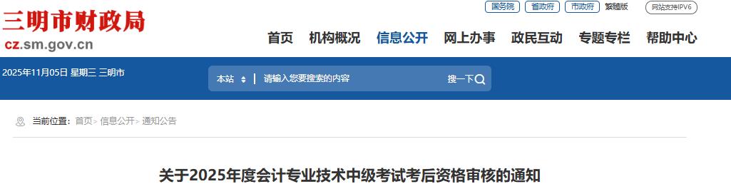 11月5日,三明市财政局发布了《关于2025年度会计专业技术中级考试考后资格审核的通知》,明确了2025三明市中级会计考后审核时间为11月6日至11月13日,审核方式为现场审核。