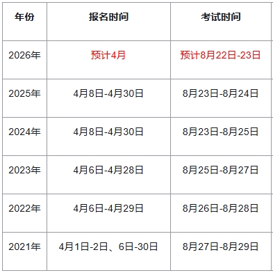 参考近5年注册会计师报名时间均集中在4月份,报名周期为期一个月,考试时间集中在8月份。考生注意:注册会计师没有补报名,考生千万不要错过。
