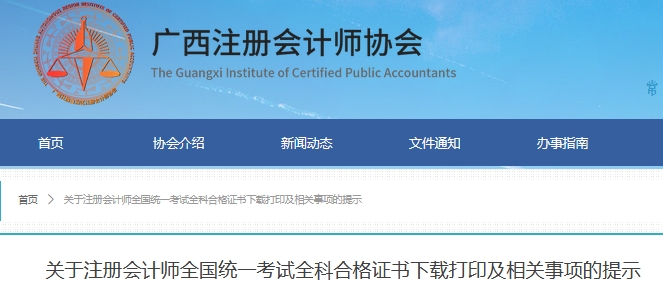 近日,广西注册会计师协会发布了《关于注册会计师全国统一考试全科合格证书下载打印及相关事项的提示》,已通过全部考试的考生,可以自行下载电子版本的全科合格证书并打印。