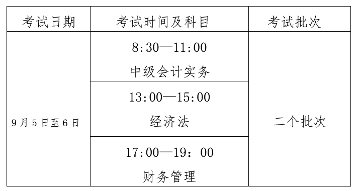 中级会计资格考试于2026年9月5日至6日举行,共2个批次。《中级会计实务》科目考试时长为150分钟,《经济法》科目考试时长为120分钟,《财务管理》科目考试时长为120分钟。