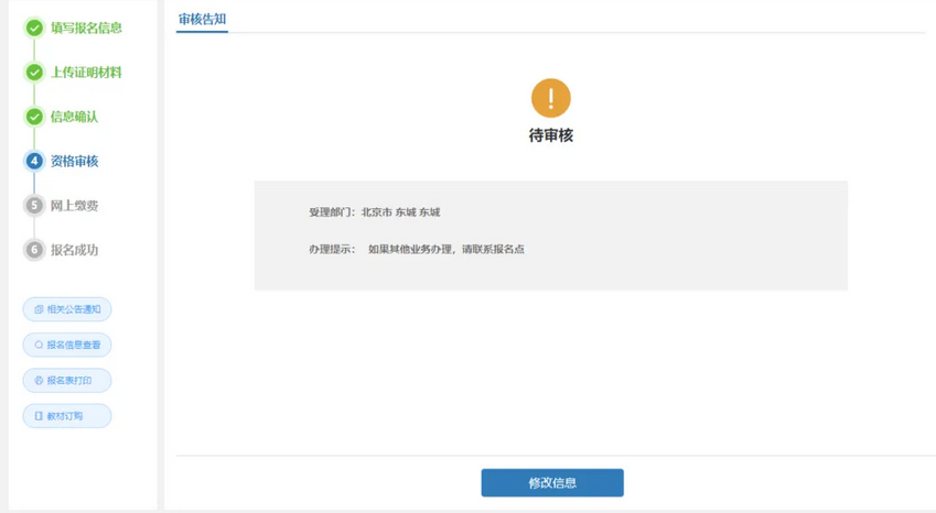 10. 确认无误后,点击下一步,进入资格审核界面。