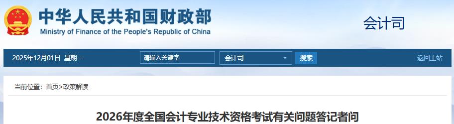 财政部发布《2026年度全国会计专业技术资格考试有关问题答记者问》,其中针对中级考试的时长调整做了如下回复: