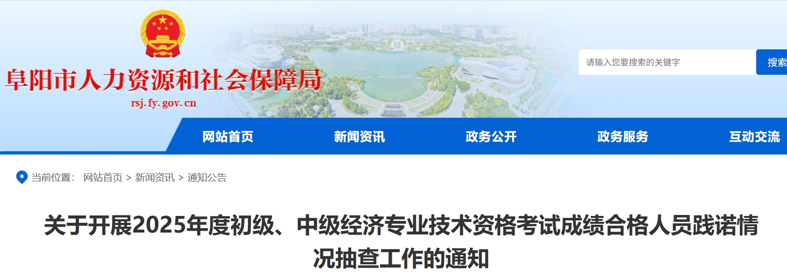 为落实专业技术资格考试事中事后监管职责,确保告知承诺制试点工作顺利推进,根据省人力资源社会保障厅《关于专业技术人员资格考试告知承诺制试点工作有关事宜的通知》(皖人社秘〔2020〕41号)要求,于近期开展阜阳考区2025年度初级、中级专业技术资格考试成绩合格人员践诺情况进行随机抽查工作,现将有关情况通知如下。