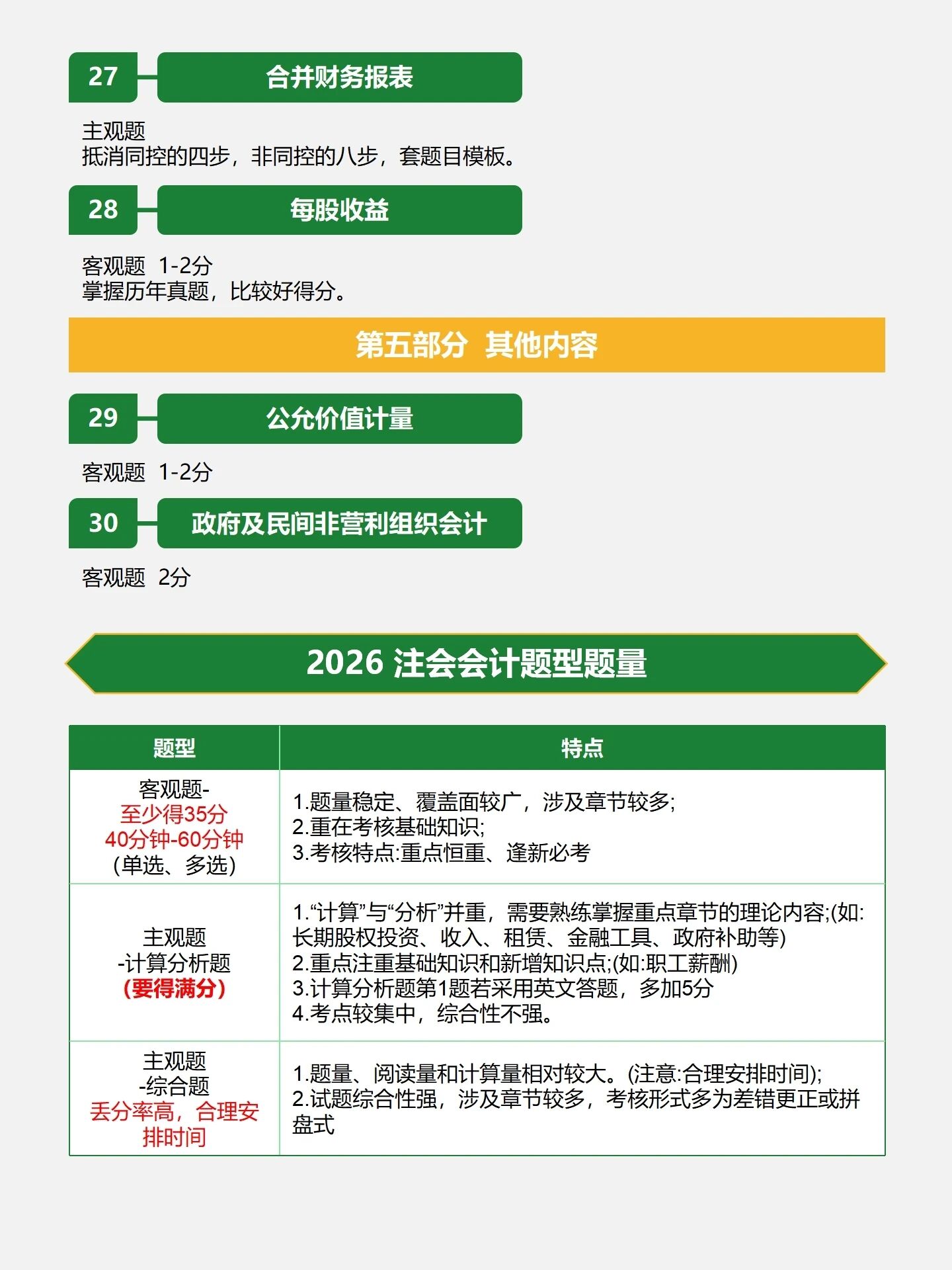 预计注会《会计》科目在2026年的总体调整不会太大,但个别章节可能会根据最新政策文件进行补充。目前预计主要变动的内容如下: