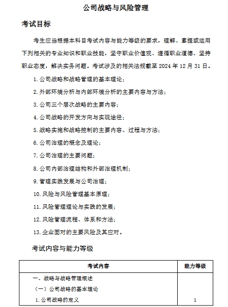 2026年cpa战略大纲公布时间预计在2月下旬,战略考试大纲为《注册会计师全国统一考试大纲——专业阶段考试》。内容包含战略管理概述、战略分析等内容。