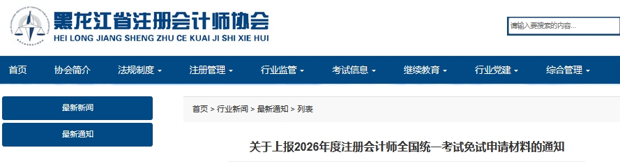 2月27日,黑龙江注册会计师协会发布了《关于上报2026年度注册会计师全国统一考试免试申请材料的通知》,申请时间为3月2日至3月13日工作日期间。
