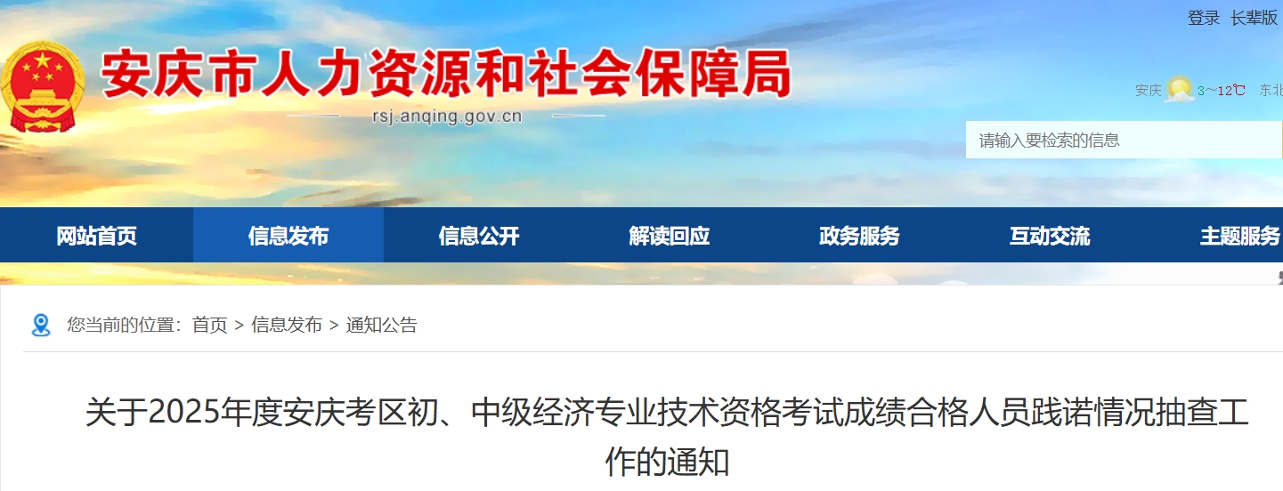 安庆市人力资源和社会保障局12月5日发布了《关于2025年度安庆考区初、中级经济专业技术资格考试成绩合格人员践诺情况抽查工作的通知》,从中得知,安庆2025年中级经济师考试合格名单、安庆2025年中级经济师资格后审须知均发布,被抽查考生请按要求准备资料提交至指定邮箱!