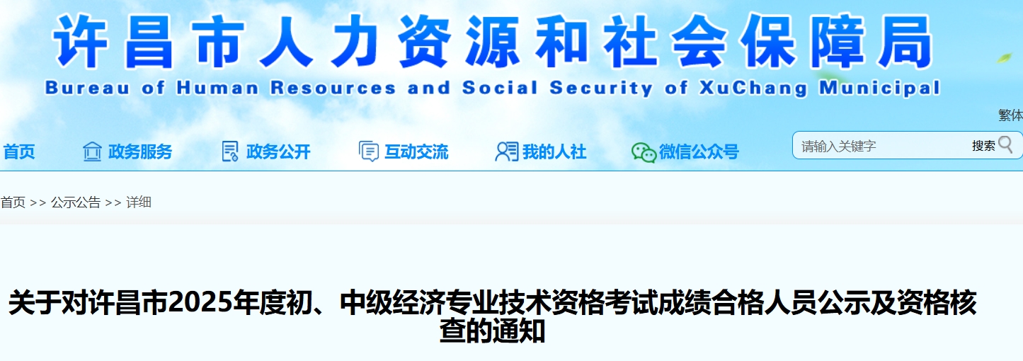根据《专业技术人员职业资格考试考务工作规程》和《专业技术人员职业资格考试报名证明事项告知承诺制工作规程》规定和要求,现对许昌市2025年度初、中级经济专业技术资格考试成绩合格人员予以公示和考后资格核查。