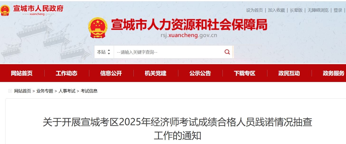 根据专业技术人员职业资格考试报名证明事项告知承诺制有关要求,拟于近期开展宣城考区2025年度经济考试成绩合格人员践诺情况抽查工作,现将有关情况通知如下。
