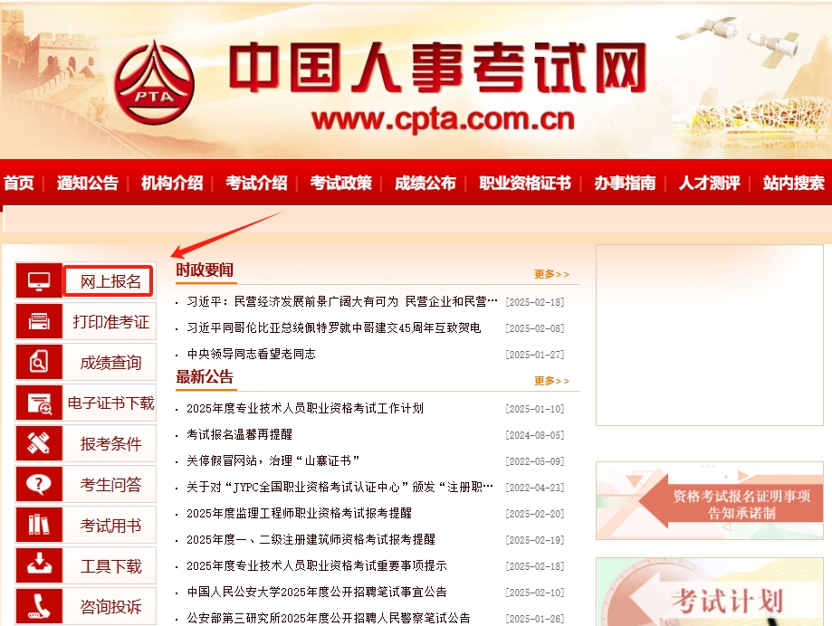 报名唯一官方入口为中国人事考试网(http://www.cpta.com.cn)考生需通过“全国专业技术人员资格考试报名服务平台”完成报名操作。为避免高峰期操作延误,建议考生6月底前完成用户注册和学历信息在线核验(约24小时出结果)。