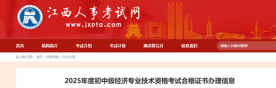通过2025年度初中级经济专业技术资格考试,成绩合格的应试人员,请按要求领取纸质合格证书和下载电子证书(请登录中国人事考试网证书查验栏目http://www.cpta.com.cn)。