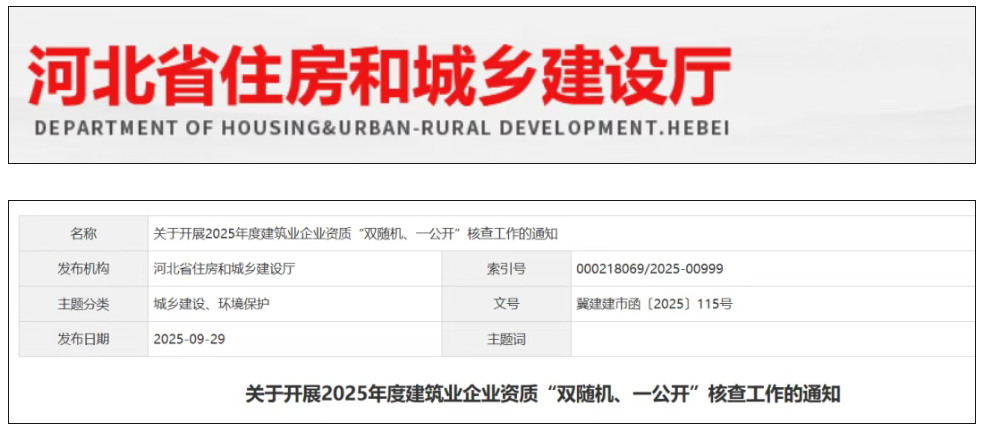 最近听到一个消息,河北省住建厅发布通知,在全省范围内开展2025年度建筑业企业资质“双随机、一公开”核查工作。