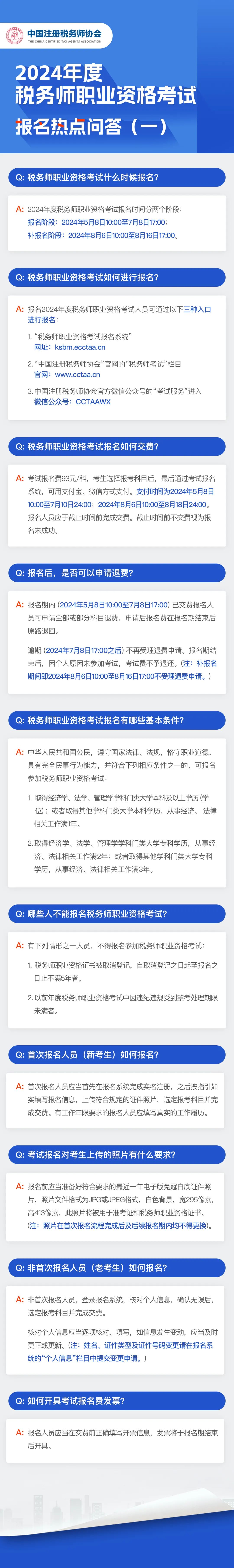 2024年6月7日,中国注册税务师协会发布了《2024年度税务师职业资格考试报名热点问答(一)》,2024年税务师报名正在进行中,考生抓紧时间报名吧!