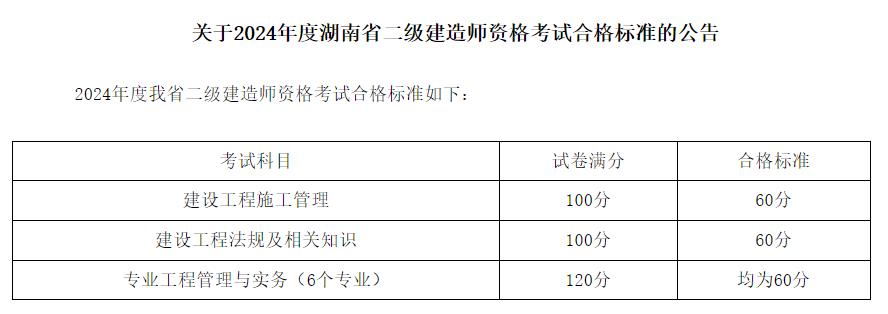 2024湖南二级建造师合格标准