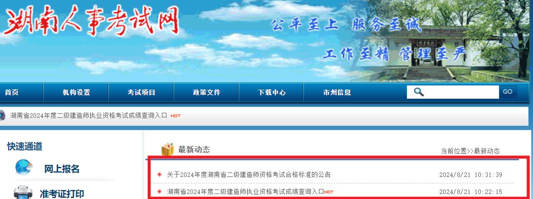 2024年湖南二级建造师成绩查询官网:湖南人事考试网(http://sjzg.cpta.com.cn:82/examfront/score/initializeCX.htm?)