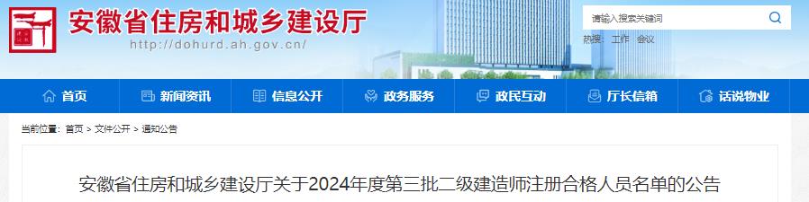 1月19日,安徽省住房和城乡建设厅发布了关于2024年度第三批二级建造师注册合格人员的名单,以下是各类合格人员名单的详细信息。