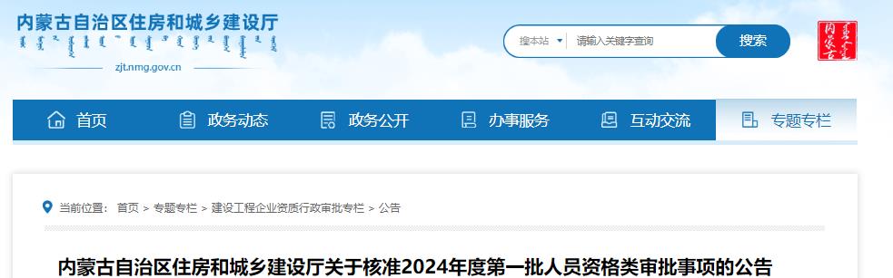 内蒙古自治区住房和城乡建设厅关于核准2024年度第一批人员资格类审批事项的公告
