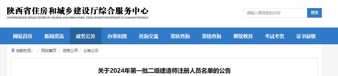 1月8日,陕西省住房和城乡建设厅综合服务中心发布了关于2024年第一批二级建造师注册人员名单的公告,公告中明确经审核,申请注册的二级建造师532人符合注册条件,准予注册。