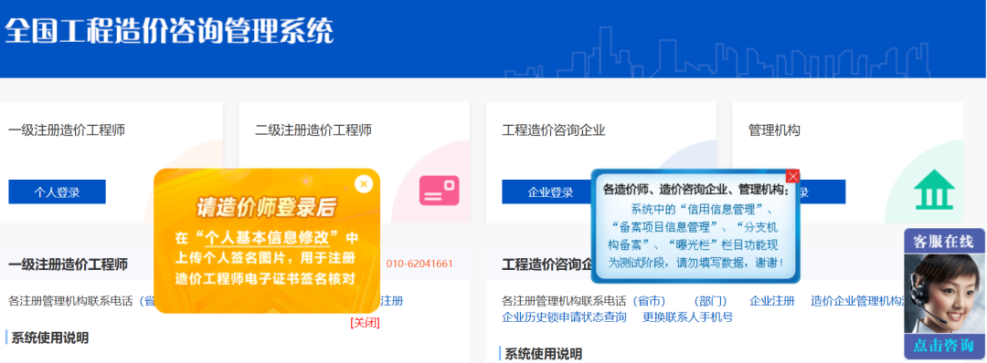 2024年一级造价工程师(土建/安装)初始注册入口已开通!考生可登陆全国工程造价咨询管理系统(网址:http://zaojiasys.jianshe99.com/cecaopsys/)进行注册。