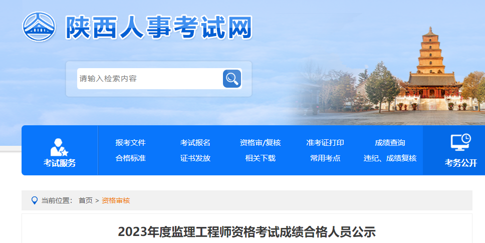 7月21日,陕西人事考试网发布了“2023年度监理工程师资格考试成绩合格人员公示”,公示期为2023年7月21日至2023年7月30日。