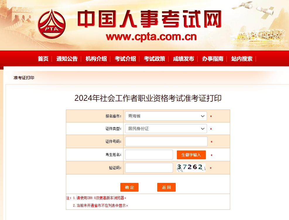 2024年青海社工证准考证打印入口开通,准考证打印页面如下: