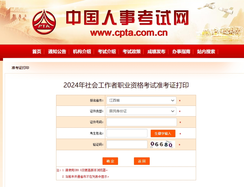 2024年江西社会工作者准考证打印入口如下:
