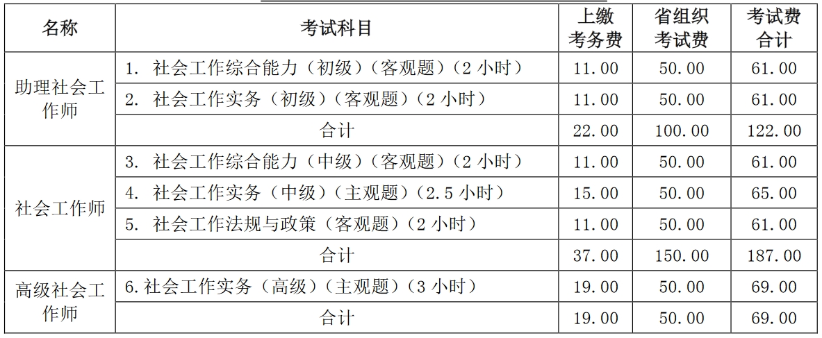 038.社会工作者职业资格考试收费标准
