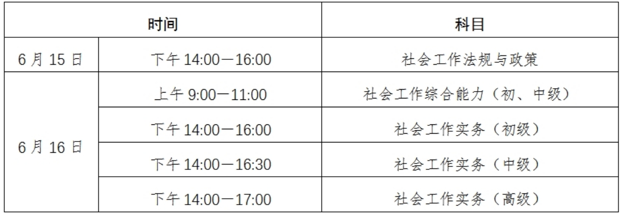 结合《宁夏自治区人力资源和社会保障厅关于做好2024年度社会工作者职业资格考试工作的通知》,整理出如下信息:2024宁夏社会工作者报名时间是4月7日9:00至4月16日23:00,2024宁夏社会工作者考试时间是6月15日-6月16日。