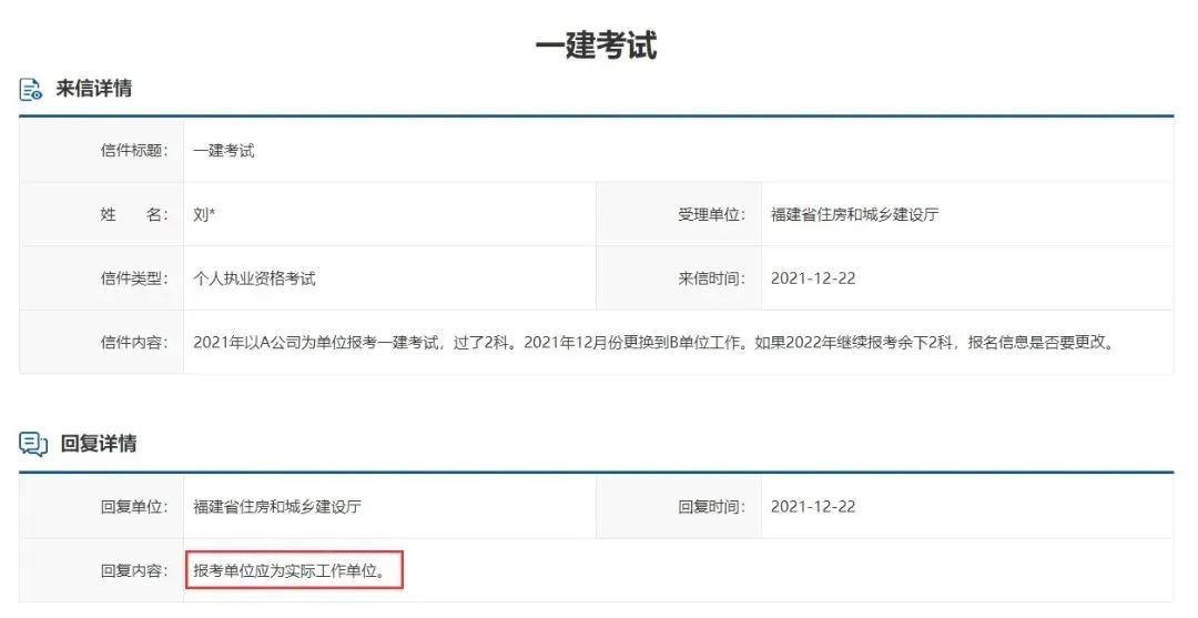 另外,福建住建厅此前也就一建考试中更换单位是否会受到影响,给出过具体解答。