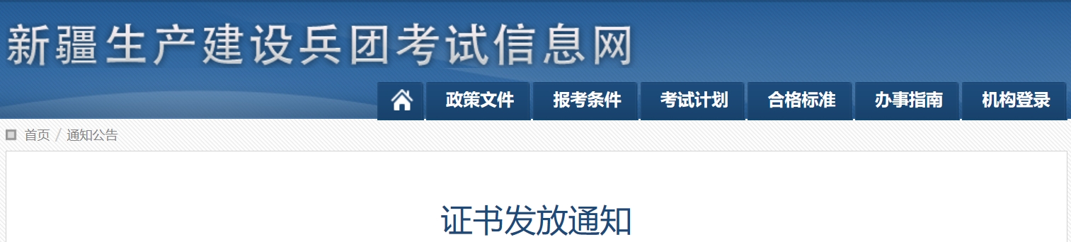 3、考生领取证书。兵直考生在兵团人力资源考试院(乌鲁木齐市天山区光明路276号E阳臻品4楼)领取,咨询电话:0991-8880763;各师考生在所属师局考试管理机构领取,领取事宜咨询各师,联系方式见“兵团考试信息网”“通知公告”栏目。
