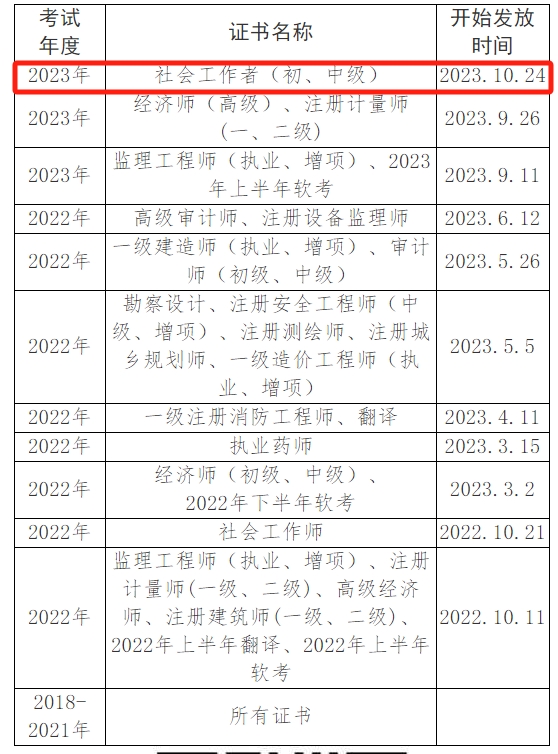 眉山市人事考试中心近日更新《关于领取人事考试证书的通知》,2023年眉山初、中级社会工作者证书于10月24日起发放,证书领取分为现场领取和邮寄两种方式。