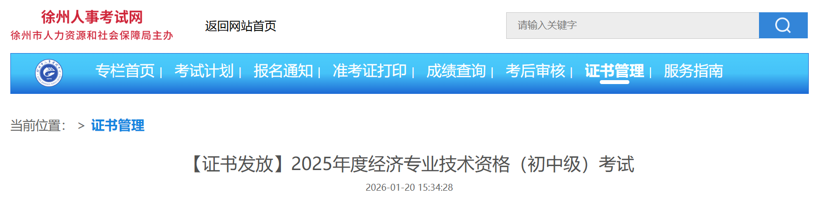 江苏徐州2025年初级经济师证书领取通知发布!明确领取时间、地点及所需材料,合格考生速备资料前往办理,及时获取证书。