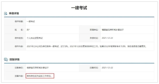 另外,福建住建厅此前也就一建考试中更换单位是否会受到影响,给出过具体解答。