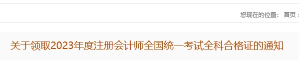 2024年1月17日,广东省注册会计师协会发布了《关于领取2023年度注册会计师全国统一考试全科合格证的通知》,其中明确了2023年广东省注册会计师证书领取时间于2024年1月23日起,成绩合格的考生请按要求领取证书。