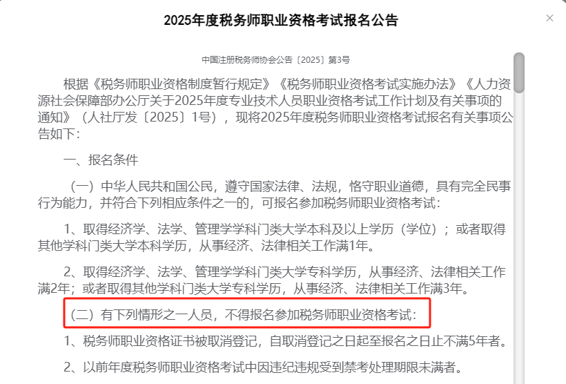 2026年税务师考试的报名简章还未公布,但是近几年税务师考试的报名条件没有发生太大变化,所以2025年的报名条件很有参考价值,让我们来看看2025年的报名条件。