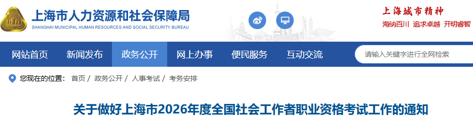 根据《人力资源社会保障部办公厅关于2026年度专业技术人员职业资格考试工作计划及有关事项的通知》(人社厅函〔2026〕6号)安排,结合本市实际,现将上海市2026年度全国社会工作者职业资格考试有关事宜通知如下: