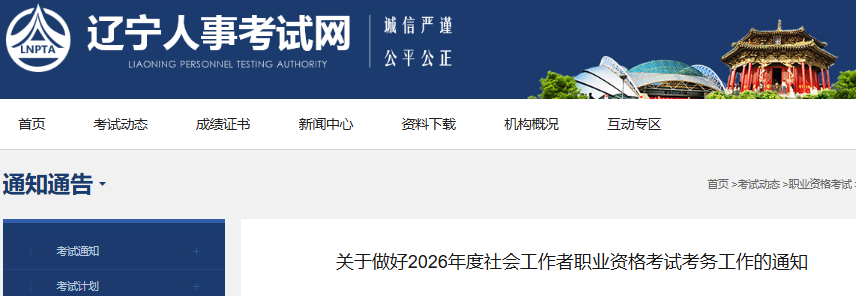 根据人力资源和社会保障部人事考试中心《关于2026年度社会工作者职业资格考试考务工作的通知》(人考中心函〔2026〕2号)要求,为做好我省2026年度社会工作者职业资格考试考务工作,现将有关事项通知如下: