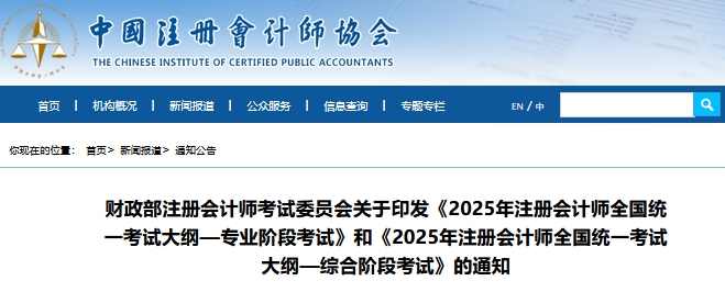 2月28日,中国注册会计师协会发布关于印发《2025年注册会计师全国统一考试大纲——专业阶段考试》和《2025年注册会计师全国统一考试大纲——综合阶段考试》的通知,速来查看详情。