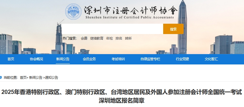 4月1日,深圳市注册会计师协会发布了《2025年香港特别行政区、澳门特别行政区、台湾地区居民及外国人参加注册会计师全国统一考试 深圳地区报名简章》,其中明确了2025年广东深圳注会报名时间、报名费用、报名流程、考试时间安排等信息。