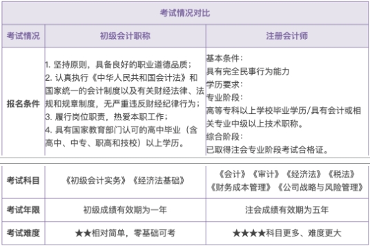 初级会计与注册会计师考试情况对比