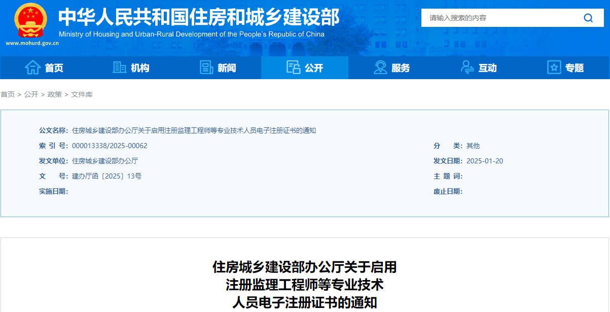 为进一步推进政务服务标准化、规范化、便利化,提高“互联网+政务服务”水平,住房城乡建设部决定启用注册监理工程师等专业技术人员电子注册证书。现将有关事项通知如下: