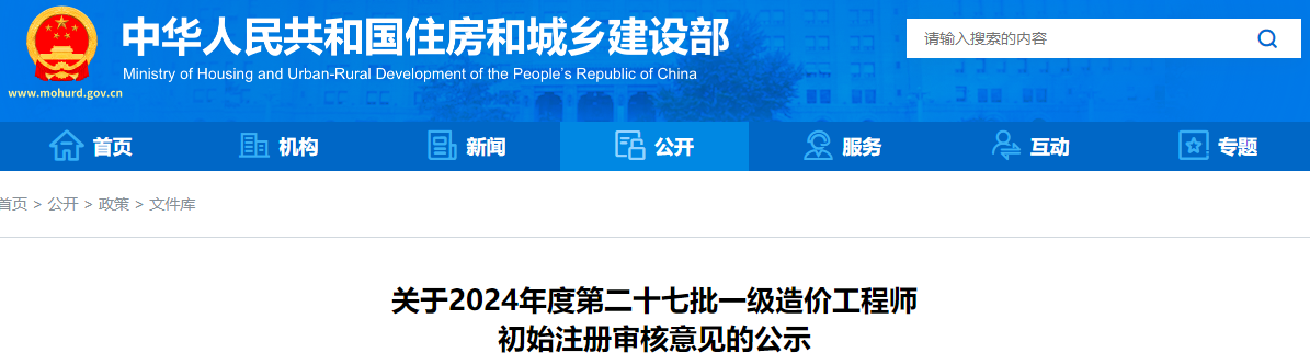 2024年度第二十七批一级造价工程师初始注册审核意见的公示通知原文如下: