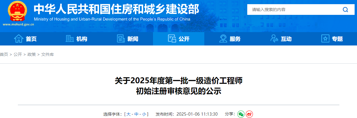 2025年1月6日,中华人民共和国住房和城乡建设部发布了《关于2025年度第一批一级造价工程师初始注册审核意见的公示》,其中明确共有544人符合一造初始注册条件,368人不符合注册条件。