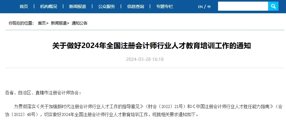 虽这个是针对已考取CPA证书的培训教育,但通过公告中附件,可以了解到注册会计师人才数量。