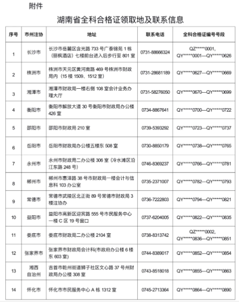 2024年为全科合格证纸质证书发放的最后一个考试年度,以后年度将不再提供纸质证书。在湖南省参加2024年注册会计师全国统一考试并取得职业能力综合测试合格成绩的考生,可携带本人身份证,前往报名考试时所选择的“全科合格证领取地”所在市州注册会计师协会领取纸质全科合格证。同时,考生也可登录网报系统查询全科合格证号,并根据《湖南省全科合格证领取地及联系信息》(见附件)中的全科合格证编号号段查询领取地。具体领证时间及方式等详情,请咨询领取地市州注协,建议考生提前与领取地所在市州注协预约领证时间。如需代领,请携带委托人亲笔签名的授权委托书及委托人和被委托人双方身份证原件、复印件。